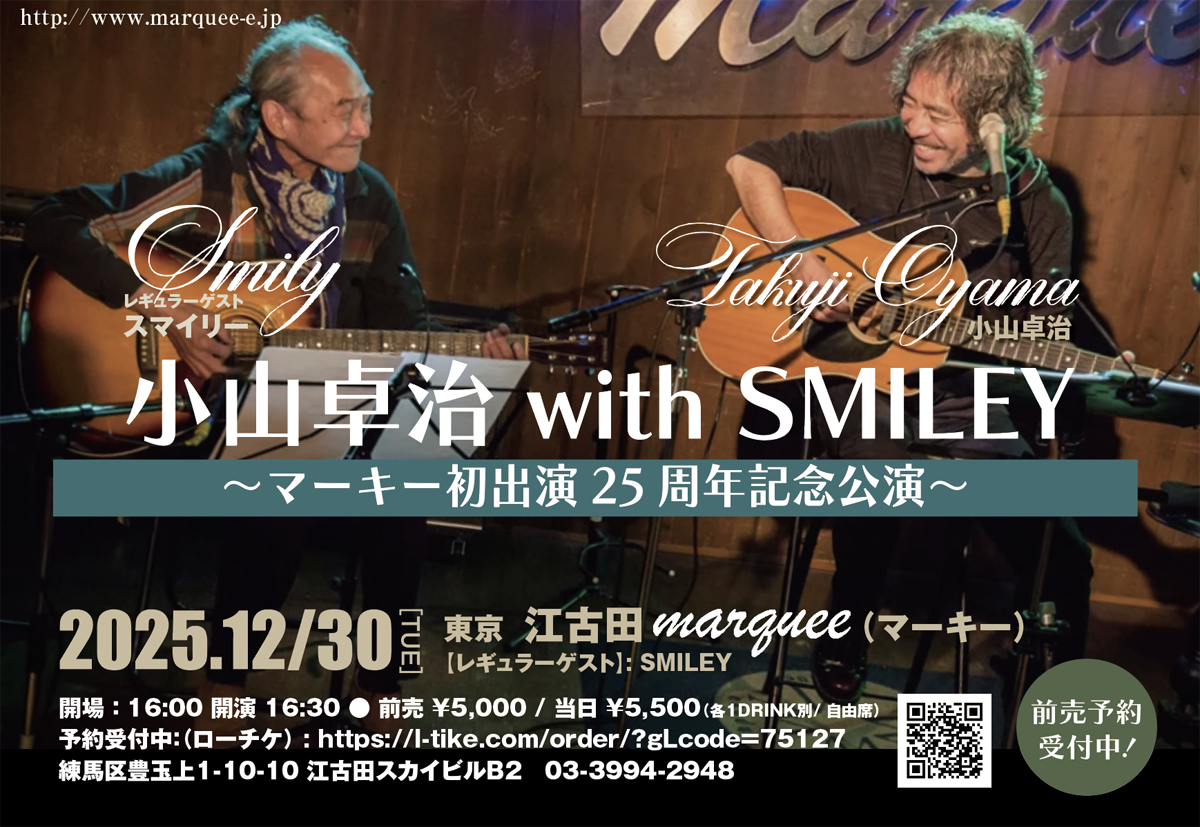 12/30 東京 江古田 マーキー 〈小山卓治 with SMILEY〉 |