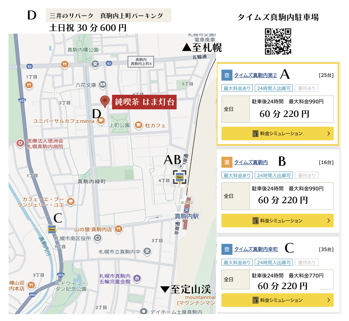 ※「はま灯台」に隣接している「三井のリパーク 真駒内上町パーキング」は